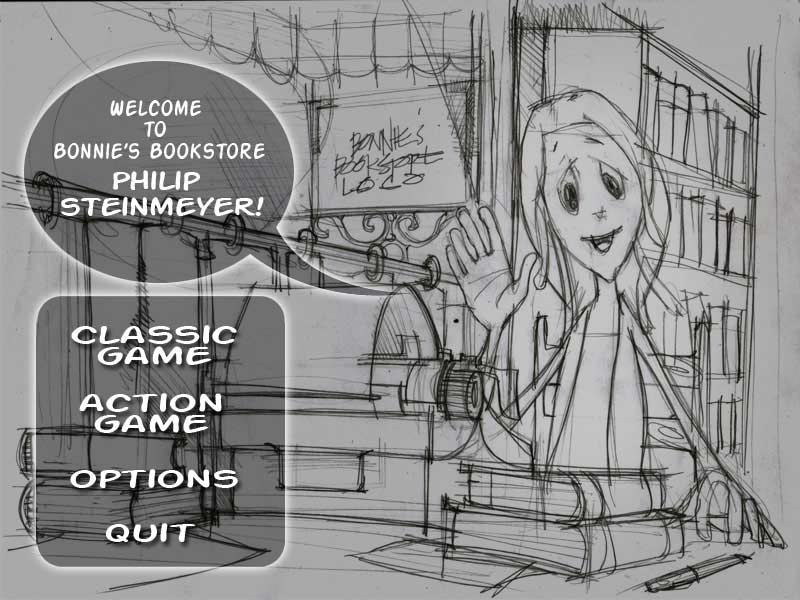 So I was going with the ‘StoryBook’ concept – a sort of children’s story world brought to life. But I ended up bringing in elements of my other two favorite concepts (Writer’s Block, and Bookstore) as well, by creating a backstory that the lead character, Bonnie, ran a bookstore she had inherited. Somewhat bored with the lifestyle of a small shop owner, she soon began writing children’s books on the side (thus leading into the main gameplay). So I got three concepts for the price of one, I guess.